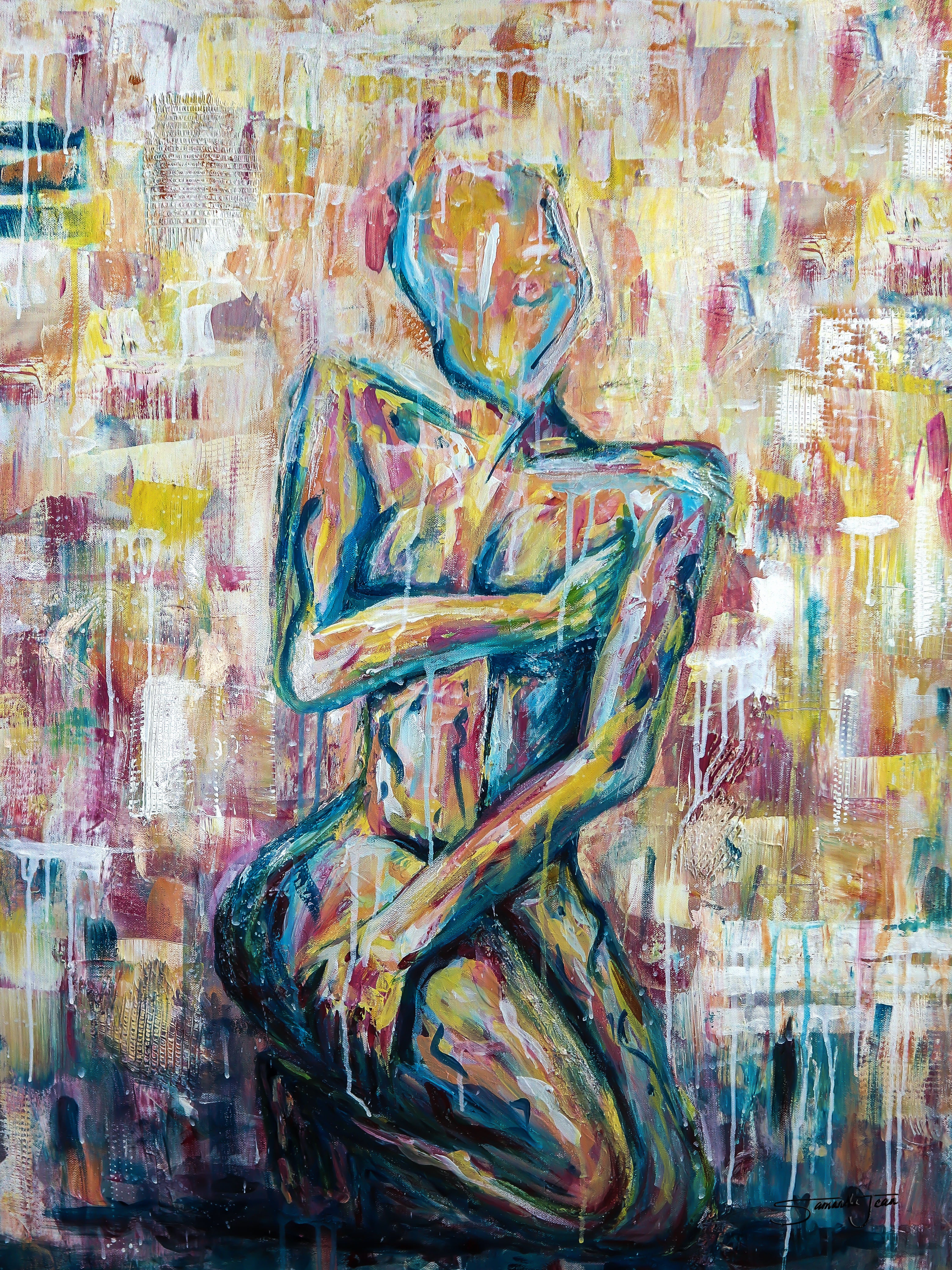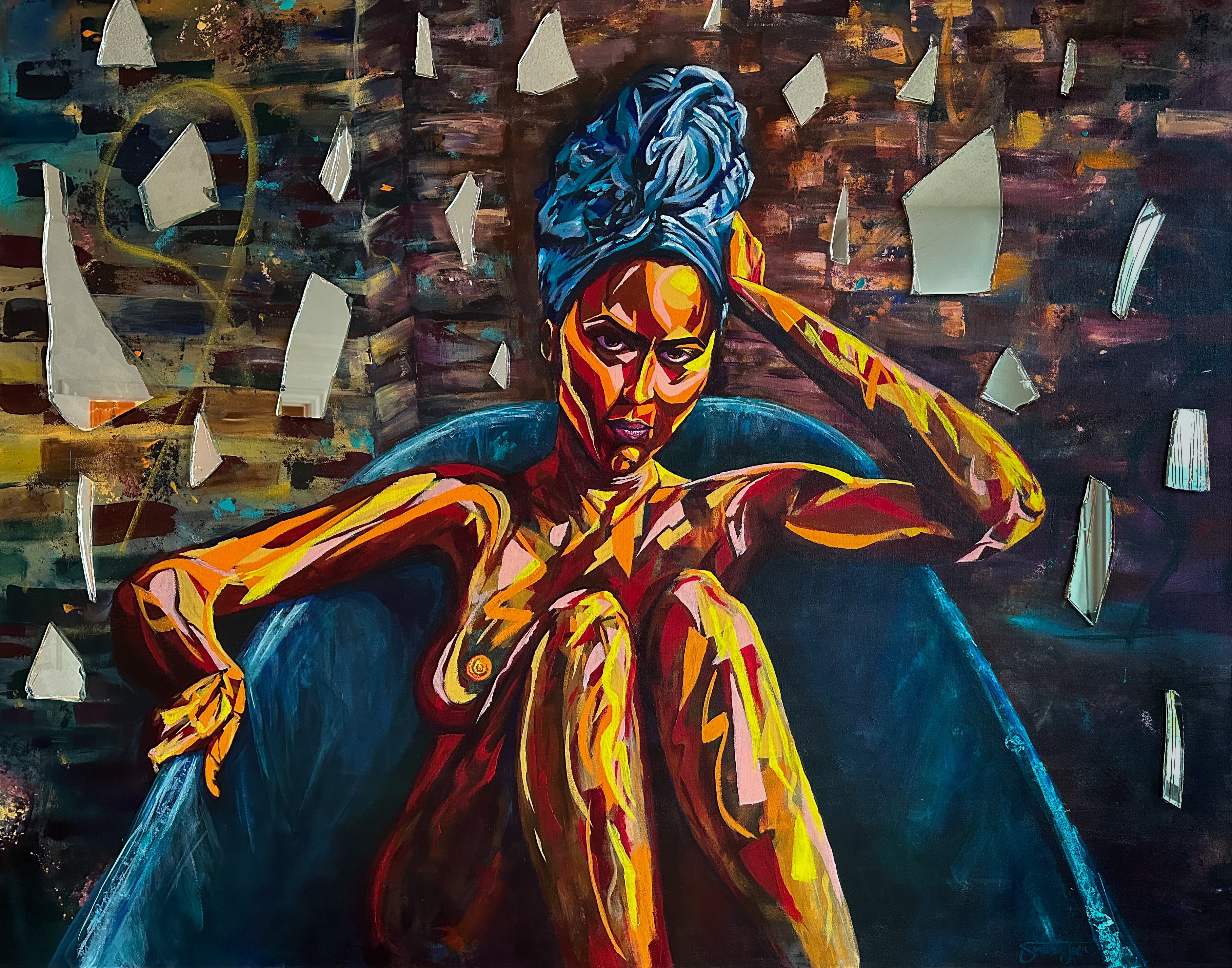 Currently, the artist is exploring the idea of 'self-reflection' and translating that into mixed-media masterpieces with the use of broken mirrors. Make sure to check out this incredible concept under the collections tab above!